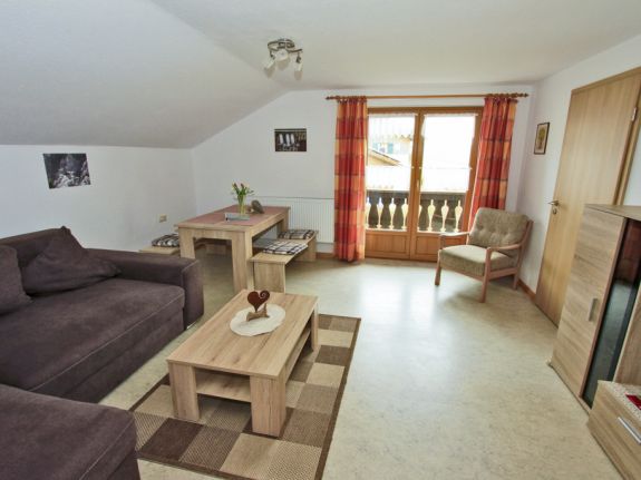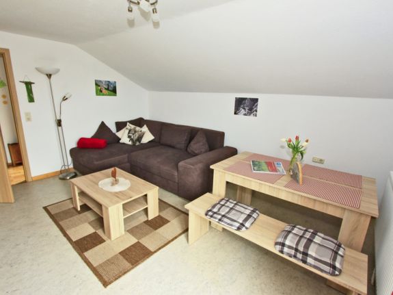 „Gipfelblick“ heißt die 56 m² große Ferienwohnung unter diesem traditionellen Dach. Sie hält, was der Name verspricht.